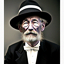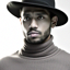 Figure 4. Example of trying to use noise to paint features of one image into another. All images use the prompt a man wearing a hat. Image (a) was generated with noise seed=123. Image (b) represents a hand painted mask used to paint over the man's face. This is used to create a new noise image, where the white pixels are taken from seed=123 and the black pixels are taken from seed=50. Image (c) is the final output, and doesn't really resemble image (a).