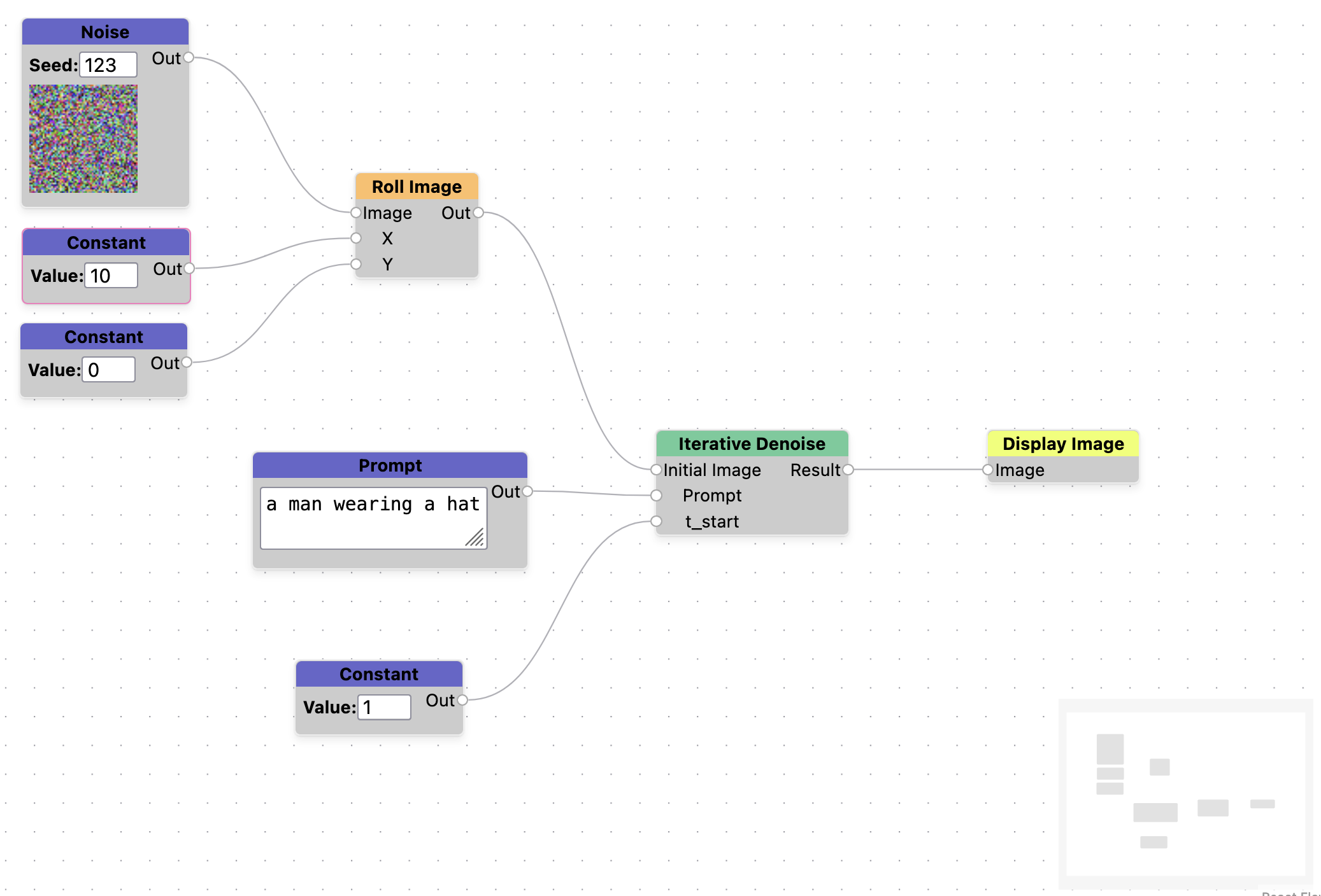 Noise has been shown to have a very large impact on the composition and content of the resulting image. Our tool should allow users to manipulate noise so they can establish the specific starting conditions that will lead to their desired image output. For instance, is it possible that taking a piece of noise from one starting condition and masking it into another will "copy" the object that is diffused in it's place to another image? These ideas should be explorable using the tool.